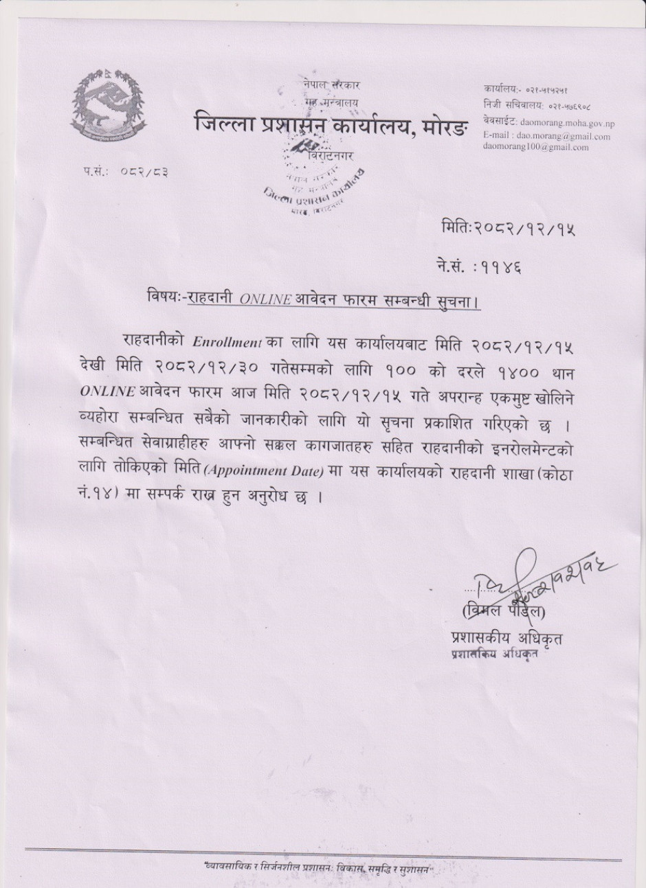 © सर्वाधिकार सुरक्षित जिल्ला प्रशासन कार्यालय, मोरङ्ग